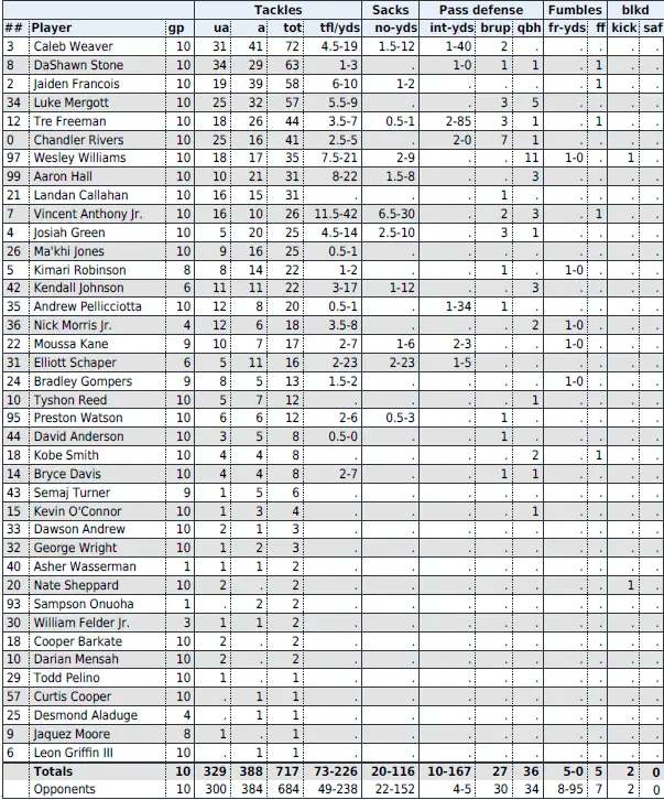 — Defense: 330.0 yards allowed (215.9 pass, 114.1 rush), 22.0 points (43rd nationally)