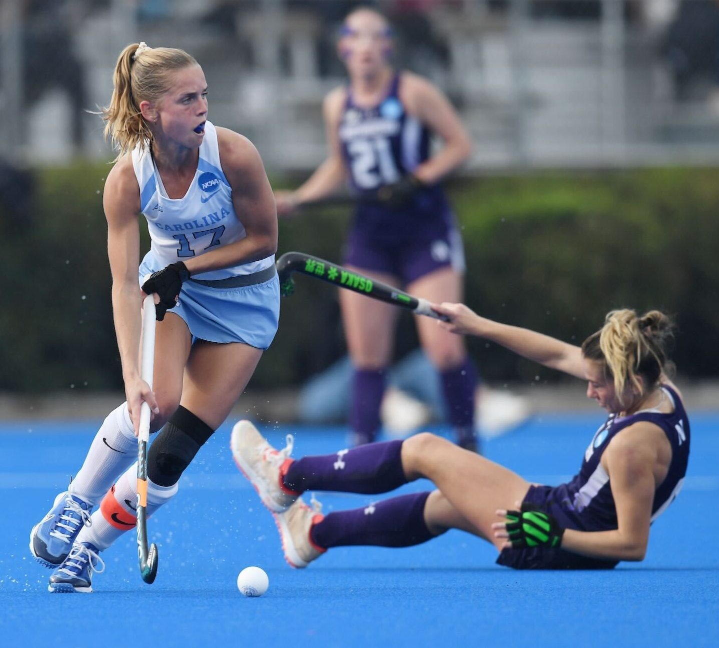 Each team scored third-quarter goals. Carolina’s came at 35:07 on another corner, with Isabel Boere whipping in a shot from the edge of the circle off a Bruder assist. Northwestern’s came at 42:47 on Bent-Cole’s driving shot on a Zimmer assist.