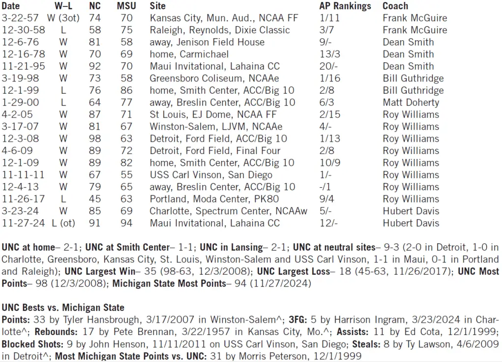 Series: UNC 13, Michigan State 5