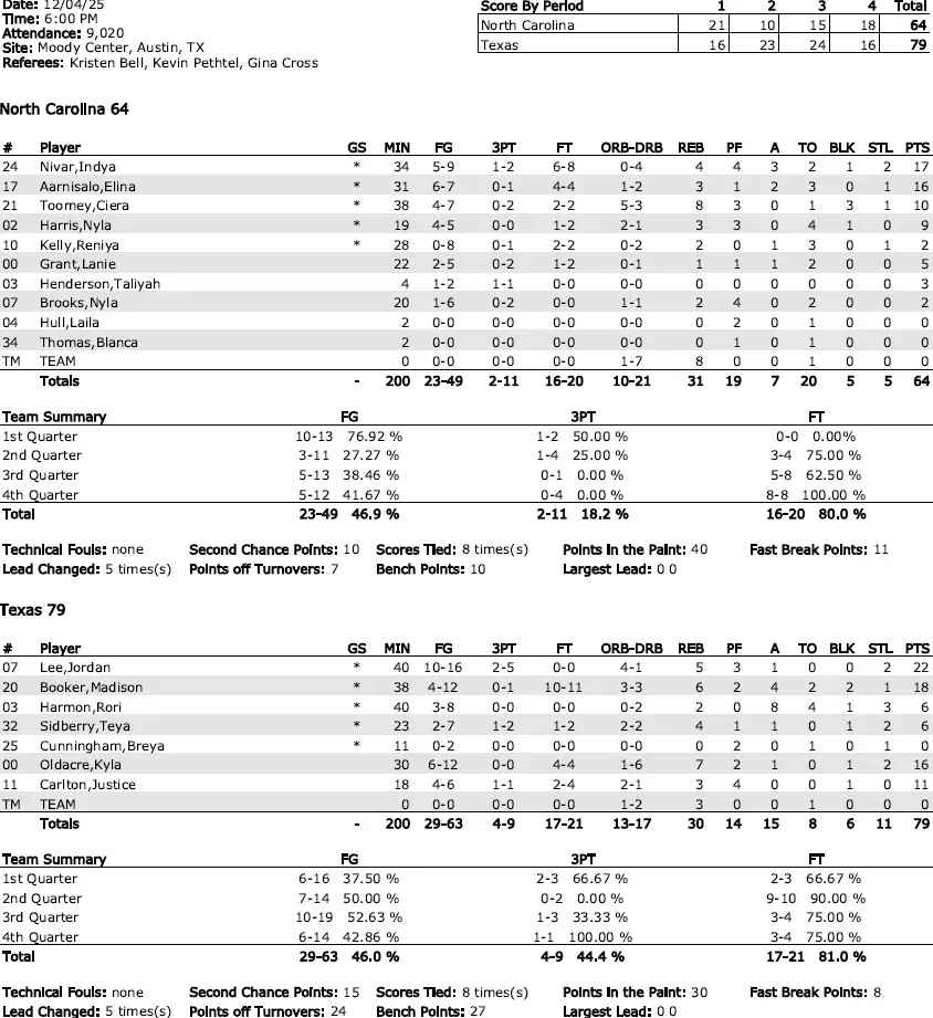 No. 2 Texas 79, No. 11 UNC 64