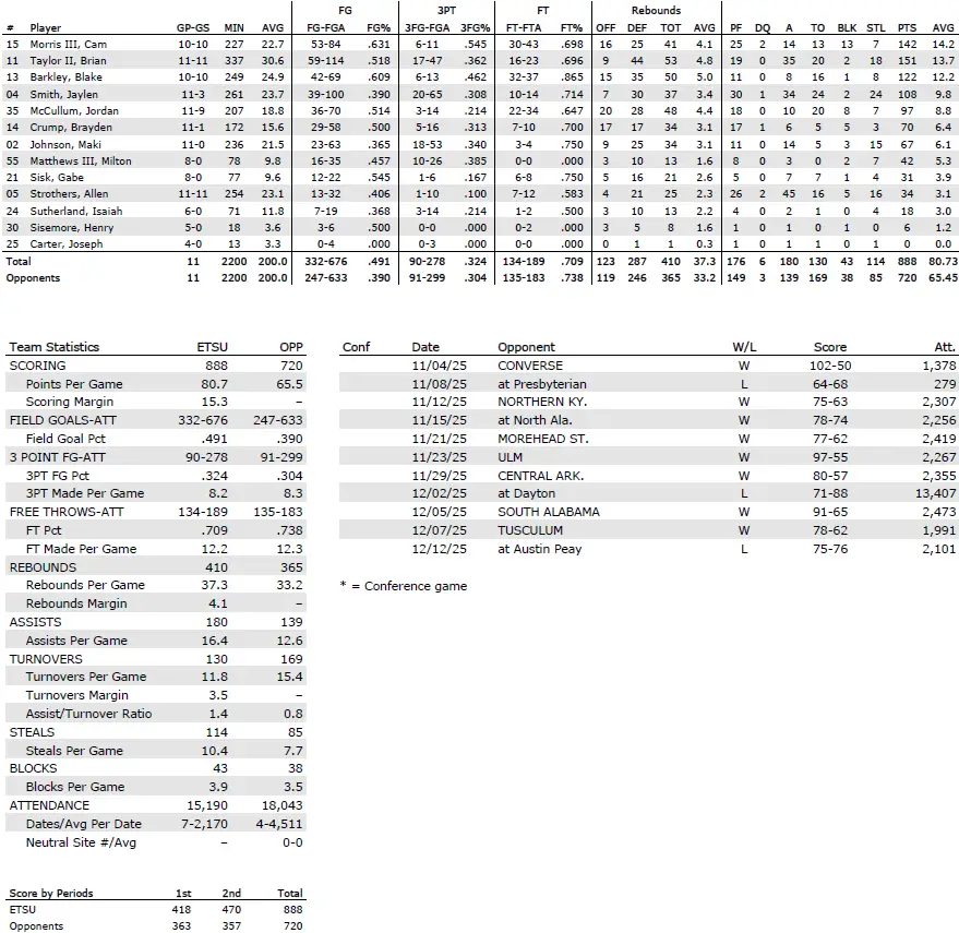 ETSU season statistics