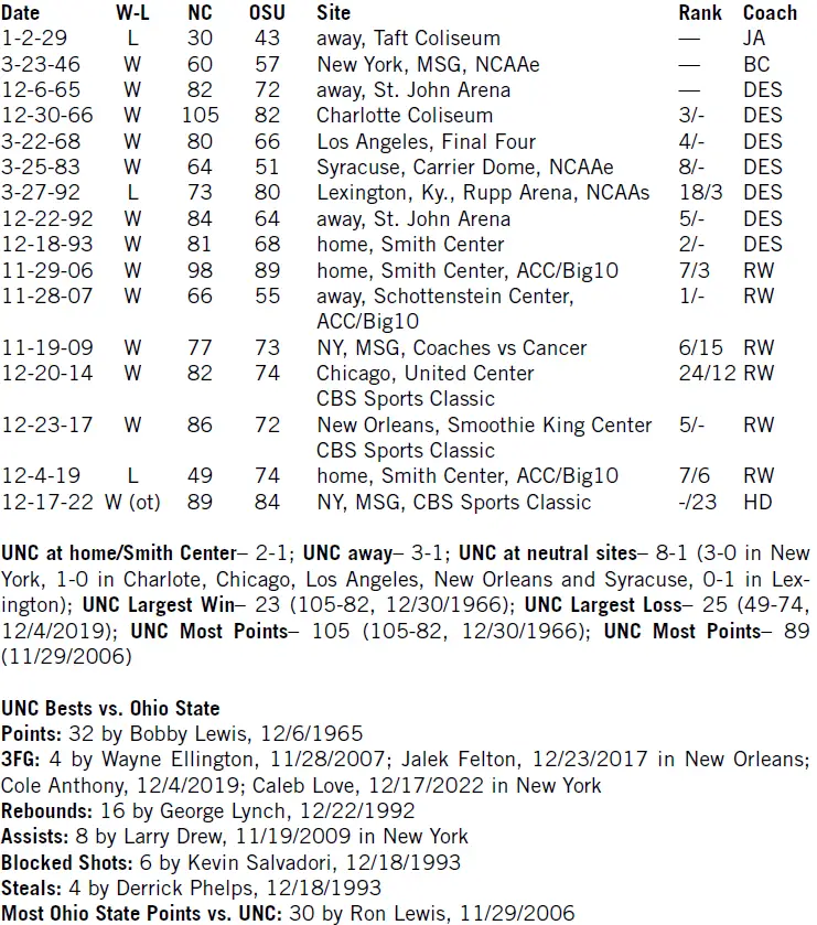 — The Tar Heels are 3–0 against the Buckeyes in the Classic.