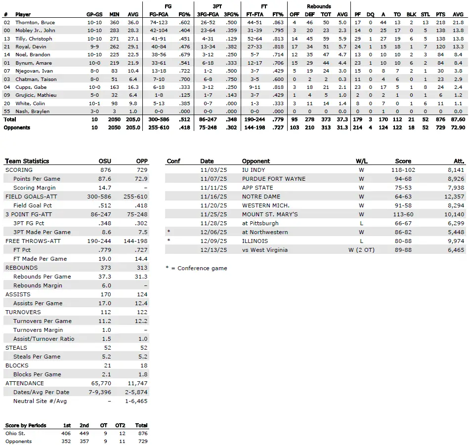 Offensively, the Buckeyes thrive on tempo and spacing. They confidently attempt 3-pointers and attack mismatches relentlessly. Defense has been an issue, with Ohio State struggling to contain dribble penetration, leaving it vulnerable against physical frontcourts.