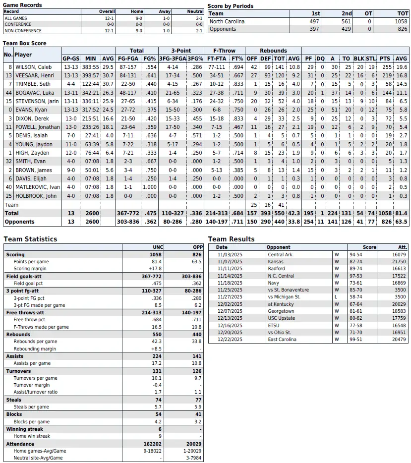 The Tar Heels rank 295th nationally in bench scoring (19.23 points per game). In the four games Trimble has started, the bench has averaged 21 points, but reserves only averaged 13 against Kansas and Ohio State.