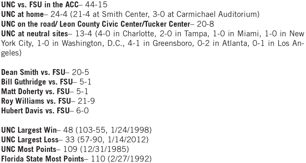 — UNC, 58–14 in ACC openers and 64–8 in ACC home openers, opens conference play against Florida State for the second time in three seasons.