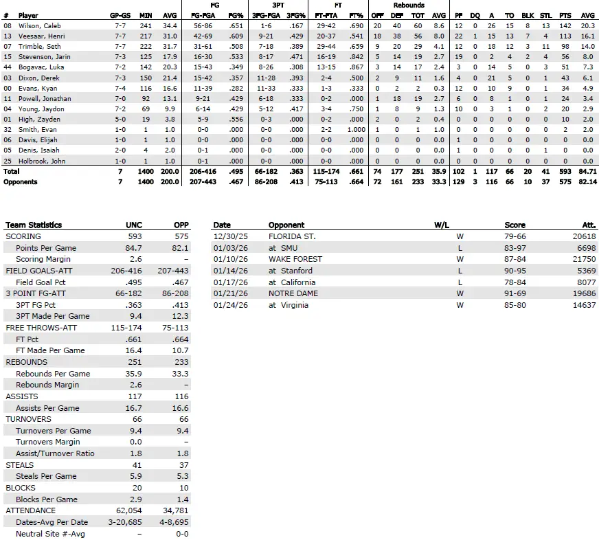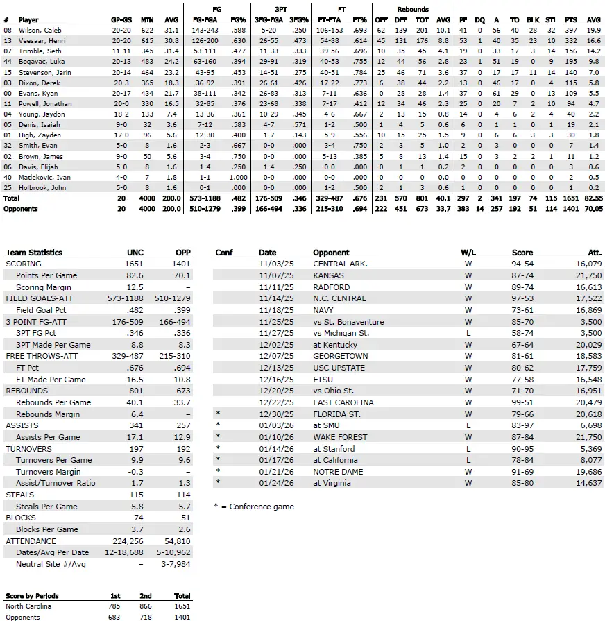 3-point shooting — Both teams can be streaky shooting from outside the arc. UNC needs decent perimeter shooting to keep Georgia Tech from packing inside against Caleb Wilson and Henri Veesaar. If the Jackets hit early 3s, it can open driving lanes and energize the crowd.