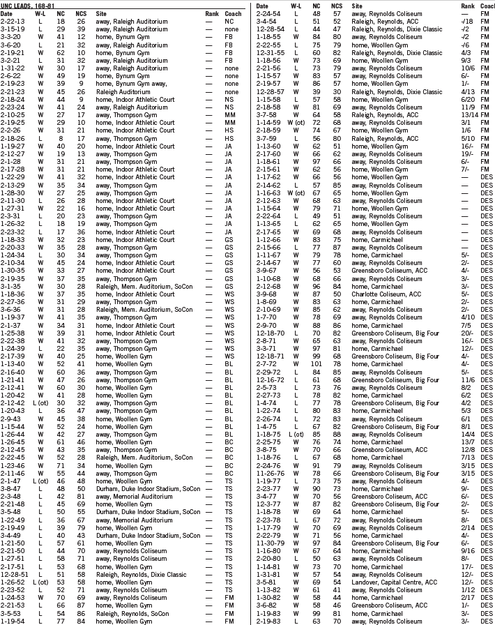 — Both beat N.C. Central at home: State 114–66 on Nov. 3, UNC 97–53 on Nov. 14