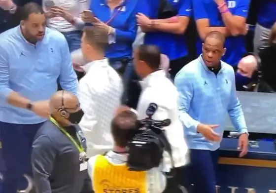 There has been a lot of talk about Duke assistant coach Chris Carrawell snubbing UNC coach Hubert Davis in the handshake line after Saturday’s game. There were also suggestions from the Duke side that it was because Davis didn’t shake hands with the assistant coaches before Carolina’s historic 94–81 victory to ruin Coach Mike Krzyzewski’s final Cameron Indoor Stadium game.