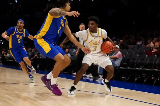 Here is a transcript and video of Notre Dame’s press conference with Coach Micah Shrewsberry, Tae Davis and Nikita Konstantynovsky after beating Pittsburgh 55–54 to earn a 2:30 second-round matchup with No. 5 North Carolina at 2:30 Wednesday.
