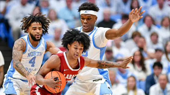 CHAPEL HILL — Carolina will have to learn how to win when giving up a lot of height, but the Tar Heels didn’t show the toughness to make that happen against a long Alabama team. The No. 10 Tide’s size and length were too much for the No. 20 Tar Heels, who fell behind by double-digits in the first half for the fourth consecutive game. UNC could never mount a significant rally in a 94–79 loss Wednesday in the ACC/SEC Men’s Challenge.