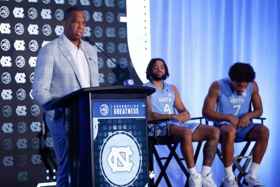 CHAPEL HILL — With veteran guards and quick players throughout the lineup, Coach Hubert Davis’ fourth Carolina team will play faster and push for good shots and transition buckets. How fast? If the offensive team fails to get the ball over halfcourt in three seconds, his whistle blows, and he declares it a turnover.