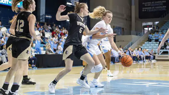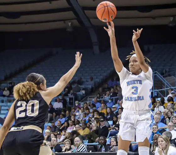 No. 13 North Carolina’s first road test of the season was just that against a feisty James Madison team. But the perimeter shooting of Eva Hodgson gave the Tar Heels control, and Deja Kelly put the game away. Kelly scored 20 of her team-high 22 points in the second half as the Tar Heels (4–0) took the lead for good late in the third quarter on their way to a 76–65 victory Sunday afternoon over the Dukes in Harrisonburg, Va.