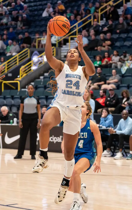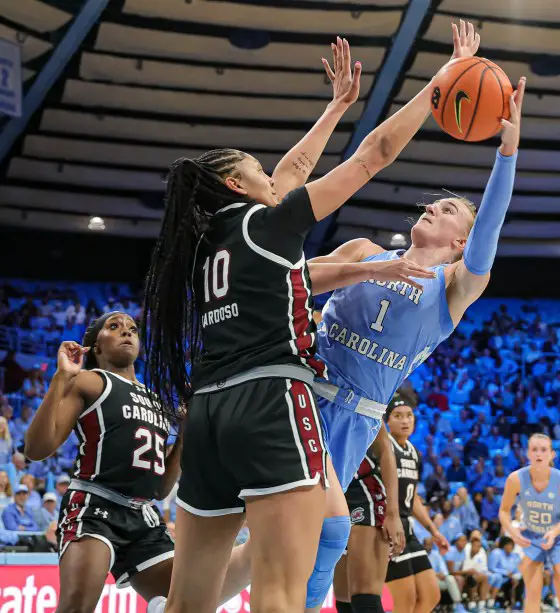 CHAPEL HILL — Anybody who thought that top-ranked South Carolina would roll into Chapel Hill and coast to victory didn’t know the character and resolve of No. 24 North Carolina. UNC has a history of giving the national power some of its toughest games, and that was the case again Thursday when the Tar Heels led by as many as 11 points in the first half. They battled admirably before losing 65–58 in the inaugural ACC/SEC Women’s Challenge before a loud and sold-out Carmichael Arena.