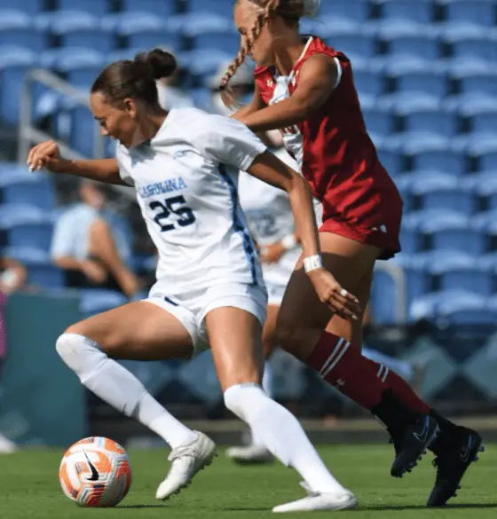 CHAPEL HILL — Carolina’s freshmen haven’t taken long to prove they’re worthy of being ranked the country’s No. 1 group in the class. Two freshmen, Melina Rebimbas and Olivia Thomas, scored their first college goals and another, Mia Oliaro, added an assist to lead No. 2 North Carolina to a 3–1 victory Sunday over Cal at Dorrance Field in its home opener.