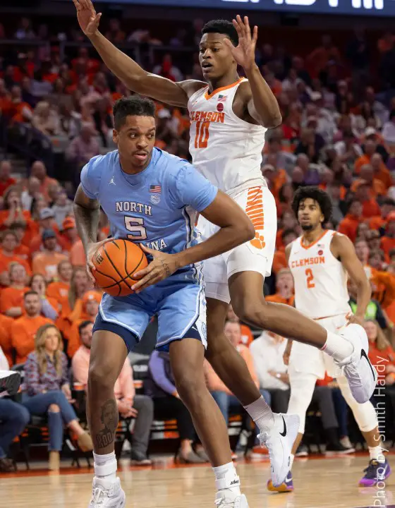 CLEMSON — In another physical game, No. 8 North Carolina came to Tiger Town and won the game from the perimeter. While No. 16 Clemson was a season-worst 1 of 18 from 3-point range, five Tar Heels contributed to their eight 3-pointers as Carolina pulled away in the second half for a 65–55 ACC win Saturday at Littlejohn Coliseum.
