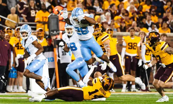 CHAPEL HILL — When extremely tired college athletes are particularly winded they sometimes see colors. That happened Thursday night for at least one offensive lineman when Carolina dominated time of possession with 29 third-quarter snaps in the Tar Heels’ 19–17 opening-game win at Minnesota.