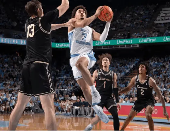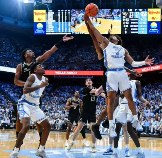 CHAPEL HILL — It was what Caleb Wilson didn’t say after getting only two second-half shots that stood out. Wilson went from making all seven shots, adding more highlight reels and scoring 17 points in the first half, to scoring five points and only one field goal in the second half of the No. 17 Tar Heels’ 87–84 victory Saturday night over Wake Forest at the Smith Center.